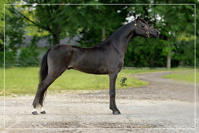 "Tiger" is a beautiful, small, and refined "Arab looking" black stallion who has obtained his Halter HOF with an additional 24 Grand Championships!! He is producing small, refined, show quality foals with beautiful heads like their Sire! We look forward to crossing him with exceptional mares in the future!